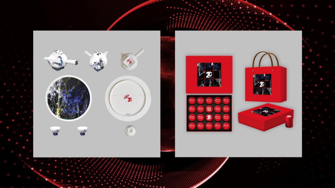 公司为所有20年员工精心准备了一份特殊的礼物。其中,每一盒茶叶的包装上都印着公司未来发展的核心产品及方案,茶叶和茶具礼盒上印的图案是一副名为《黑夜缝隙》的艺术作品,画面中的光就像整个夜空的缝隙,似乎想要撑开或者撕裂黑夜 ,彰显出对现代社会的设问和希冀。以此表达对这些20年员工,为星空xingkong昔日辉煌做出的努力的肯定和感谢。长期以来,公司也在关注科技与艺术的融合发展,积极扶持、培养青年艺术家,而这幅作品就是公司合作艺术家庹梦倩所创作。